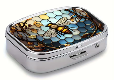 Dieses super coole kleine Ding aus Eisen mit jeweils einem flotten Brummer auf ihm / ihr drauf (hier eine Biene) kann als Reiseetuis,, kleines Schmuckkästchen, Pillendose, Münzsammler etc. verwendet werden.