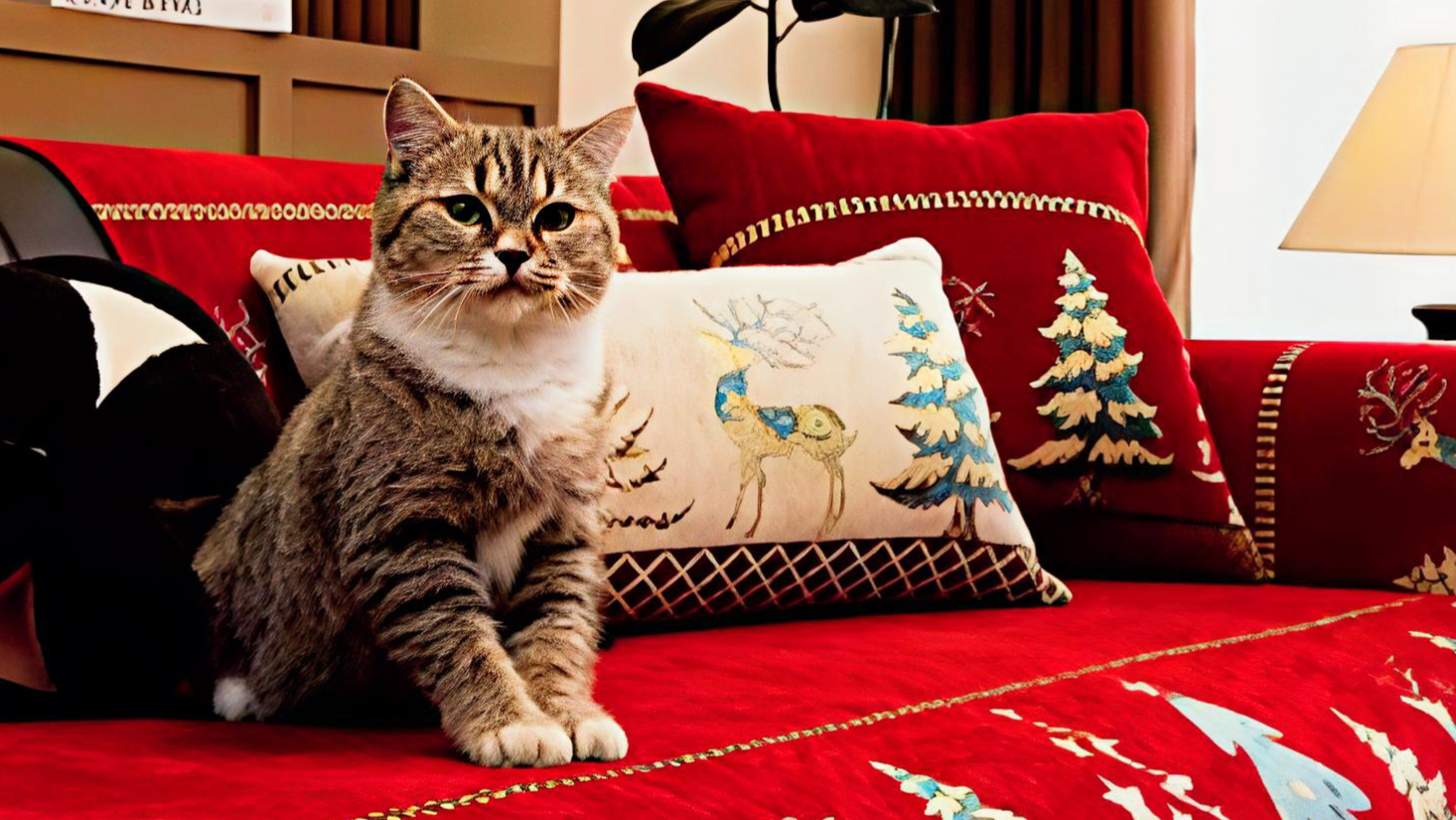 Roter Chenille Sofa-Kissenbezug 45 x 45 cm mit Weihnachtsmotiven, passend zur roten Chenille Weihnachts-Sofa-Überdecke, Nur Handwäsche, nicht über 45°
